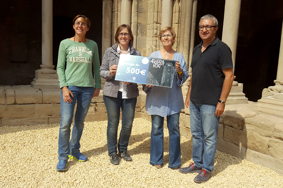 Ahir 23 de setembre es va fer efectiva la donació de 500€ en presència de la tinent d'alcalde Montse Parra i del director del Consorci del Turó de la Seu Vella, Joan Baigol. Aquesta quantitat és un percentatge corresponent a la inscripció d'atletes de la 4a Lleida Night Run, que es va celebrar el proppassat 22 de juliol al Turó de la Seu Vella.