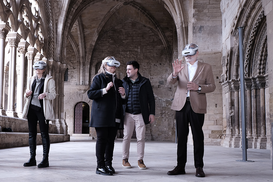 Tot seguit, els assistents s’han traslladat al claustre per poder gaudir de l’experiència de realitat virtual amb ulleres 3D de darrera generació. El desenvolupament del projecte tecnològic, impulsat per l’Ajuntament de Lleida i el Consorci del Turó de la Seu Vella, anirà a càrrec de l’empresa lleidatana INVELON i pel que fa als continguts, comptarà amb l’assessorament històric de la Càtedra del Turó de la Seu Vella, la Universitat de Lleida i el Museu de Lleida.