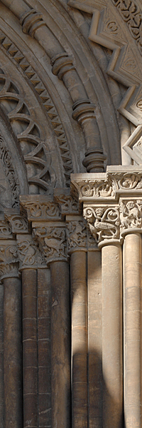Known by this name for being the obligatory access gate for children who had to be baptized, the Fillols Gate virtually repeats the sculpture of the main nave’s gate, which was its model to follow. The same ornamental motifs are fully present again in archivolts, abacuses, capitals and friezes that terminate in an imposing cornice.