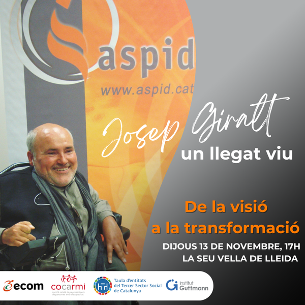 Josep Giralt convirtió su visión en acción y su compromiso en transformación. Referente a la defensa de los derechos y la autonomía de las personas con discapacidad, abrió caminos y dejó una huella profunda en nuestra sociedad. ¡Con este acto, le decimos gracias y reafirmamos el compromiso de seguir haciendo vivo su legado!