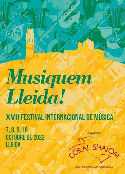 "Musiquem Lleida!" es un festival internacional de música organizado por la Coral Shalom que se celebra los días 7, 8, 9, y 16 de octubre en las calles y plazas de la ciudad de Lleida y comarcas.