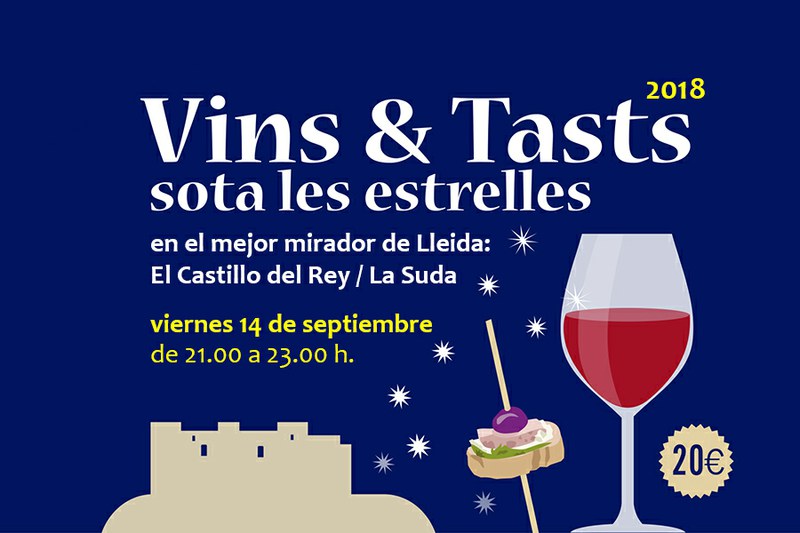 El Consorcio del Turó de la Seu Vella ha programado para el viernes 14 de septiembre una nueva edición de la actividad "VINS & TASTS SOTA LES ESTRELLES" que consiste en una cata de vinos de la D.O. Costers del Segre + degustación de productos de proximidad en el mejor mirador de Lleida: la terraza del Castillo del Rey / La Suda.