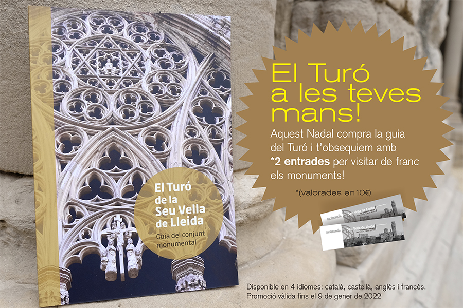 La nueva guía del Turó, que tiene un importe de 14€, está disponible en 4 idiomas: catalán, castellano, inglés y francés y la podéis adquirir en la recepción de la Seu Vella.