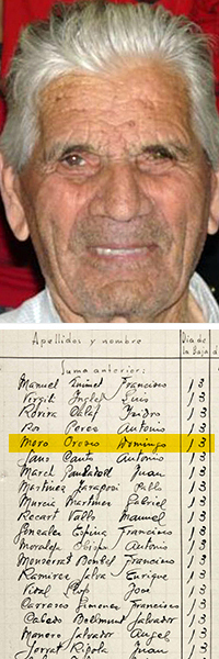 Nacido en Altea (Alicante) en 1916, Domingo Mora Orozco fue movilizado por la República a finales de 1937 y trasladado con otros compañeros de la misma población, a Barcelona. Destinados en una compañía de artillería, fueron enviados al frente de los Pirineos primero y después al frente del Segre (Benavent de Segrià). Cuando el ejército nacional ocupó Catalunya, fueron capturados y llevados a un campo de prisioneros temporal de Fraga (Huesca), desde donde huyeron a Francia atravesando los Pirineos. Capturados nuevamente, fueron enviados al campo de concentración de la Seu Vella.