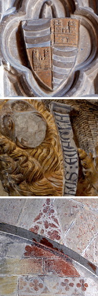 La polychromie la plus remarquable ici procède de la sculpture architecturale, présente aussi bien sur les consoles de support des nervures des voûtes que sur les emblèmes héraldiques des nervures. De plus, un des murs comporte encore des peintures, très abîmées, qui faisaient sans doute partie d’une scène plus vaste. D’après la documentation, cette scène était présidée par une Vierge flanquée de deux anges, avec à ses pieds la représentation du fondateur de la chapelle, Arnau Sescomes.